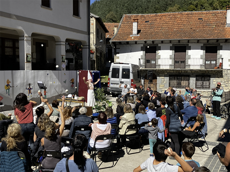 Estos seres fantásticos ilustran algunos de los animales de la fauna local y la vida humana en Uztarroz y en el valle, con guiños a la gastronomía, al gusto por cantar, los trucos, la ganadería o el trabajo en el monte.